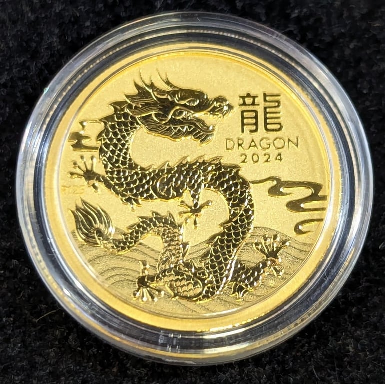 2024 YEAR OF THE DRAGON 1/4OZ 9999 AU GOLD TWENTY FIVE DOLLAR COIN