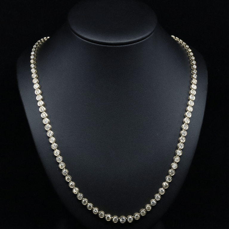 The Design Features, 103 Round Brilliant Cut, Diamonds (16.42Ct Tdw, I-K Colour, Si1-P2 Clarity), Bezel Set. The Necklace Has A Box Lock Clasp, With One Safety Latch. Necklace Length Is 50.5Cm.