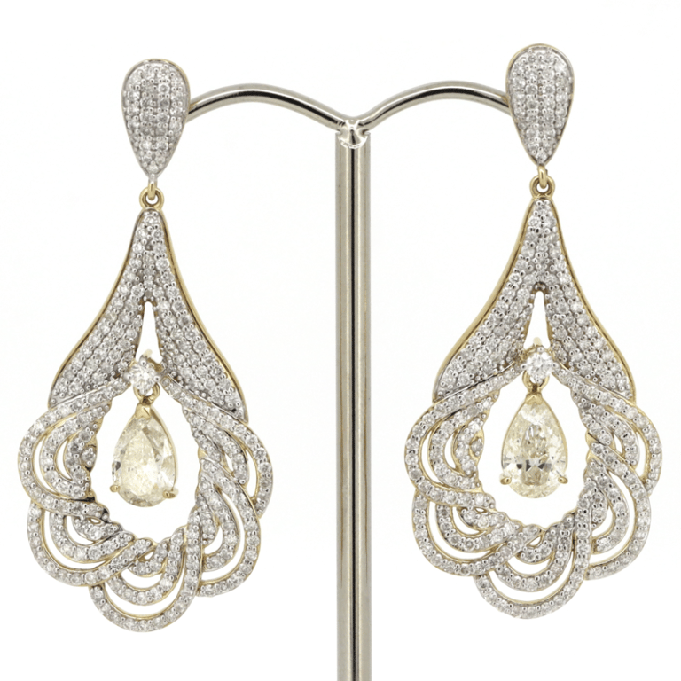 The Designs Feature, 2 Pear Brilliant Cut, Fancy Light Yellow, Diamonds (2.02Ct Tdw, Si2-I1 Clarity), Vee Claw Set. Encompassing The Design Are, 422 Round Brilliant Cut, Diamonds (2.63Ct Tdw, H-J Colour, Si-I2 Clarity), Claw/Pave Set. Earrings Feature 14K White Gold Butterfly Clasps.