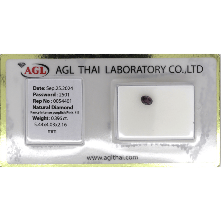 0.396CT CERTIFIED, NATURAL FANCY PURPLE/PINK NATURAL DIAMOND, OVAL BRILLIANT CUT, FANCY INTENSE PURPLISH-PINK, I1 CLARITY, LOOSE, UNSET.