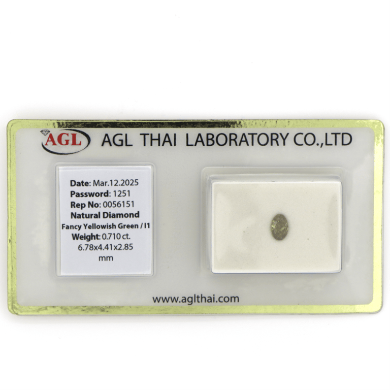 0.710CT CERTIFIED, NATURAL YELLOW/GREEN DIAMOND, OVAL BRILLIANT CUT, FANCY YELLOWISH-GREEN COLOUR, I1 CLARITY, LOOSE, UNSET.