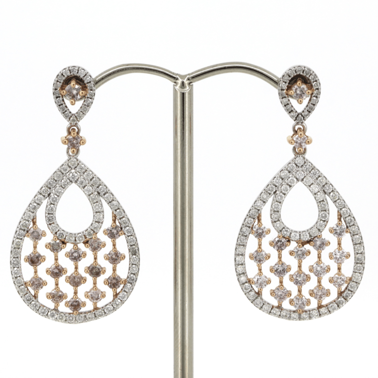 14K WHITE/ROSE GOLD, FANCY PINK DIAMOND, DROP EARRINGS.