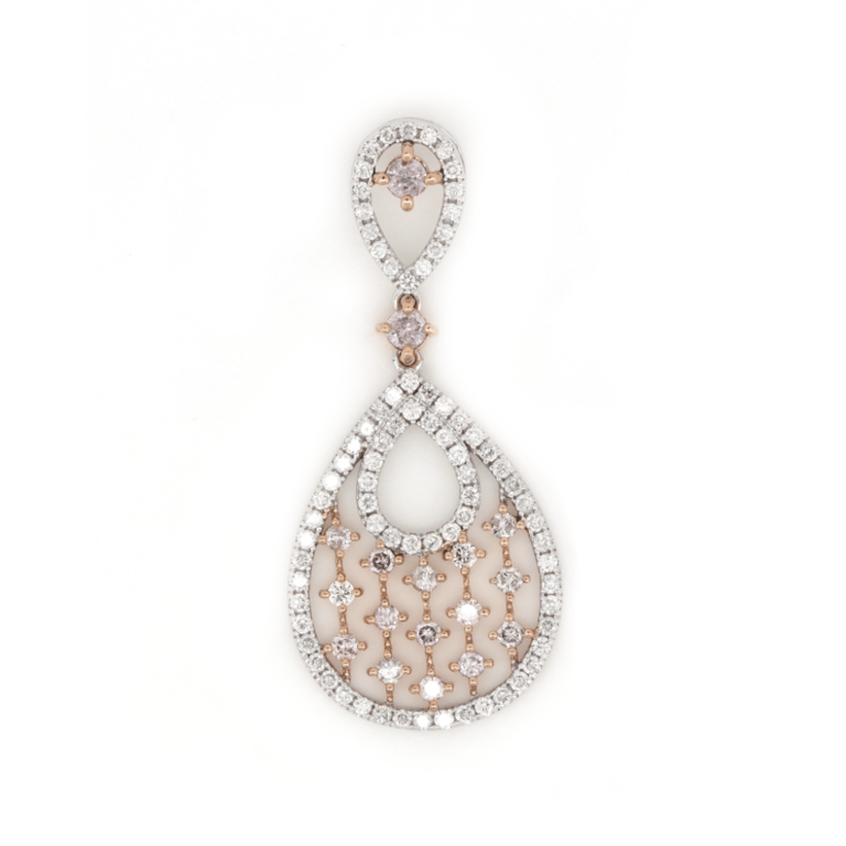 The Design Features, 17 Round Brilliant Cut, Fancy Light Pink, Diamonds (0.24Ct Tdw, Si-I1 Clarity), Claw Set In Rose Gold. Surrounding The Design In A Halos And Decorating The Bail Are, 17 Round Brilliant Cut, Diamonds (1.10Ct Tdw, G-H Colour, Si-I1 Clarity), Micro-Bead/Pip-Claw Set.