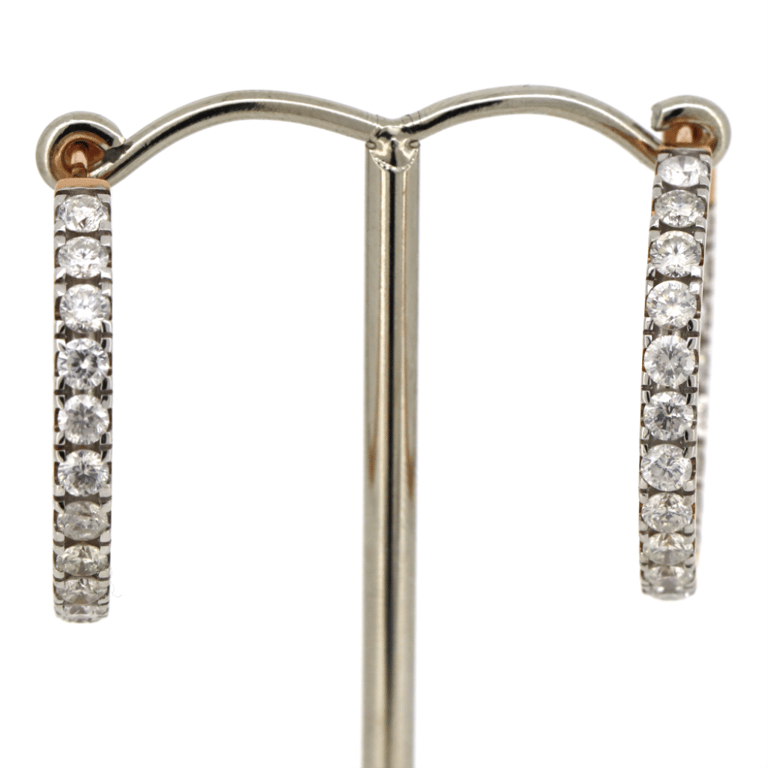 14K ROSE GOLD, 3.03CT TDW DIAMOND, HOOP EARRINGS. The Hoops Feature, 40 Round Brilliant Cut, Diamonds (3.03Ct Tdw, H-K Colour, P2+ Clarity), Pip-Claw Set. The Earrings Have Hinged Closures. Valuations Provided by an Independent Third-Party Professional Not Directly Associated With Lloyds Auctions at AUD $$23,000.00This valuation has been conducted by an independent third-party professional. The valuation amount is an assessment by the issuing valuer and does not reflect the auction value of the item. Any inquiries regarding the valuation should be directed to the issuing valuer (refer to contact details on the certificate), as Lloyds Auctions has no affiliation or influence over the valuation, the valuer, or the stated amount. Condition: Good - Refer Images 0645848+3219