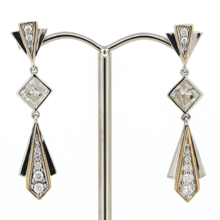 14K WHITE/YELLOW GOLD AND DIAMOND, ART DECO INSPIRED DROP EARRINGS.
