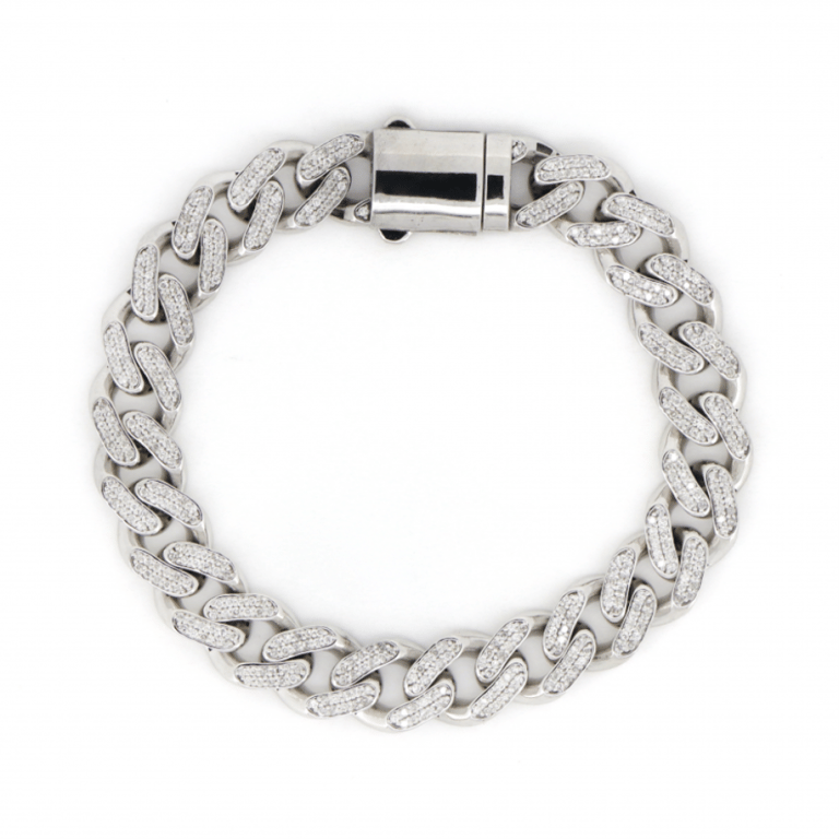 14K WHITE GOLD AND DIAMOND, CUBAN CHAIN LINK BRACELET.