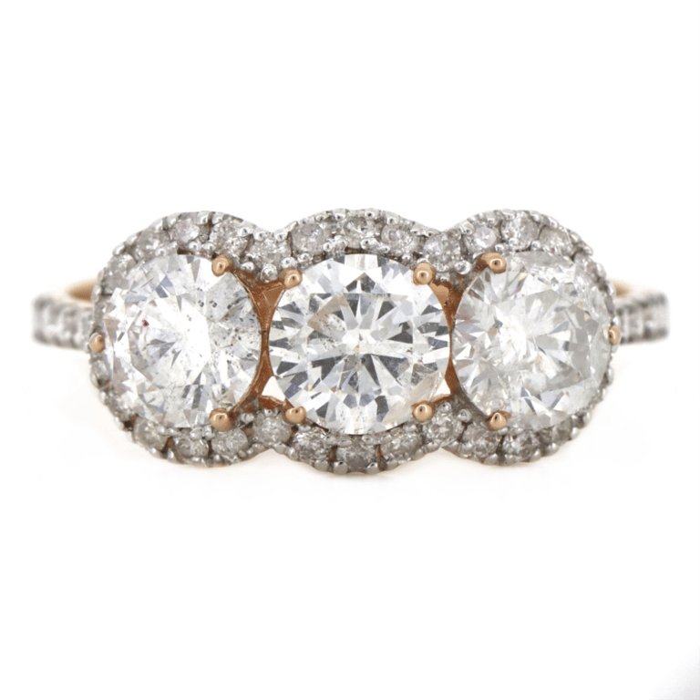 14K ROSE GOLD AND DIAMOND, HALO TRILOGY RING.