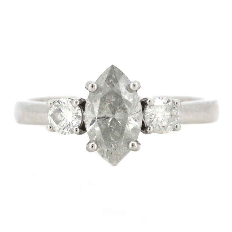 The Centre Features, One Marquise Cut, Diamond (1.00Ct, G-H Colour, I2+ Clarity), Claw Set. Flanking Either Side Of The Centre Are, 2 Round Brilliant Cut, Diamonds (0.28Ct Tdw, G-H Colour, Si2-I1 Clarity), Claw Set. Ring Size M.
