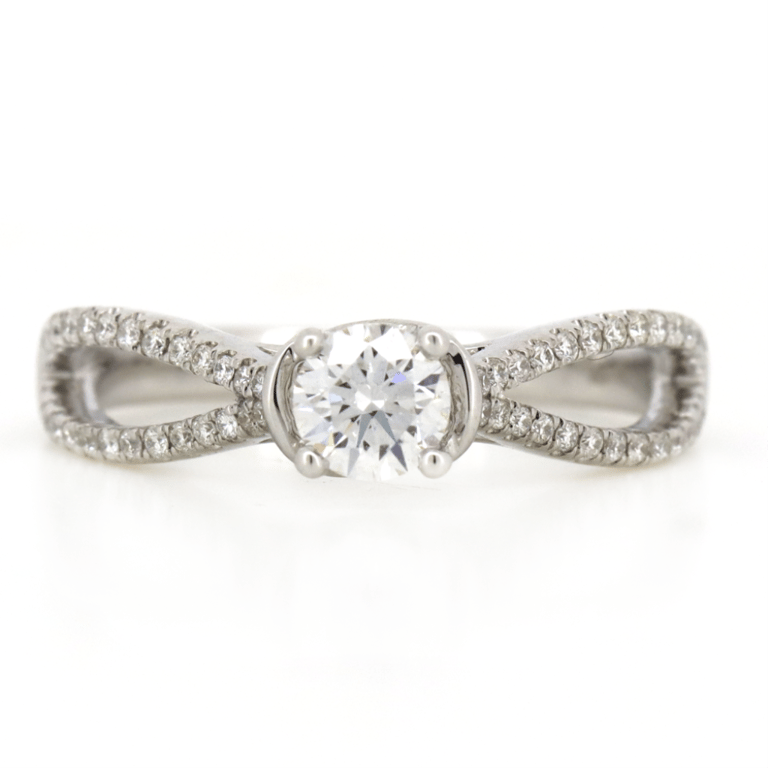 The Centre Features, One Round Brilliant Cut, Diamond (0.60Ct, F Colour, Vs2 Clarity), 4 Claw Set. Accompanied By, 52 Round Brilliant Cut, Diamonds (0.81Ct Tdw, G+ Colour, Si+ Clarity), Bead Set. Ring Size N.