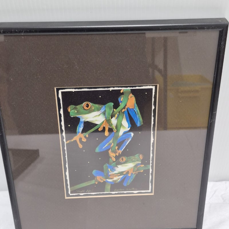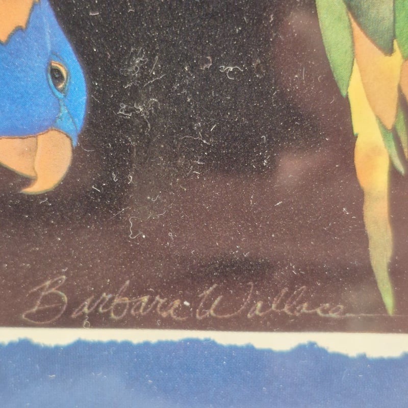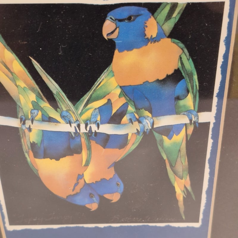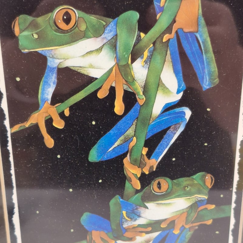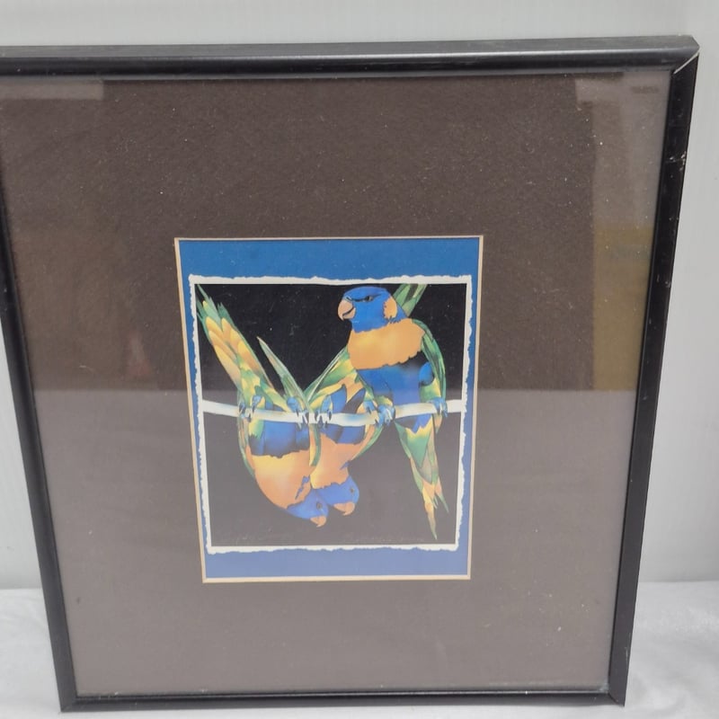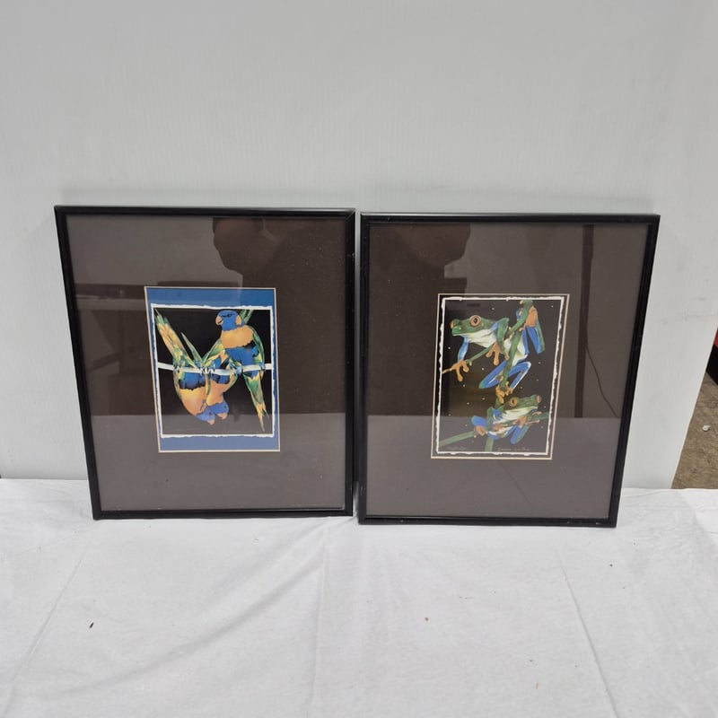 ORIGINAL PRINT ON CANVAS RED EYED TREE FROG & RAINBOW LORIKEET Item Size: Height: 32cm, Width: 27cm, Depth: 2cm Condition: Good - Refer To Images 587668+5