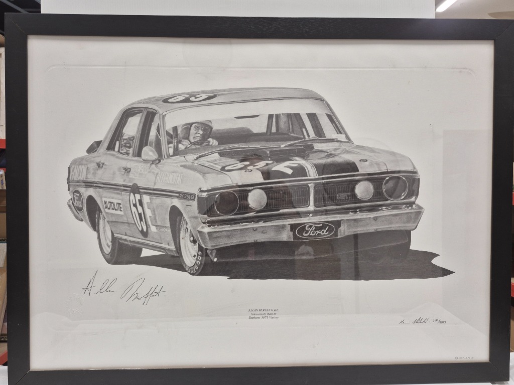 MOTOR ART PTY LTD Black Framed Limited Edition Lithograph On Paper Title: The Ford Falcon Gtho Phase Iii Image Size: 53cm x 85cm Frame Size: 70cm x 102cm Item Size: Height: 70cm, Width: 102cm, Depth: 2cm, Weight: 3Kg Edition: 482 Signature Details: Across Bottem Has Certificate Of Authenticity Accompanied By A Certificate Of Authenticity Condition: Good - Refer To Images Signed Allan Moffat Located Rack 2 586164+1