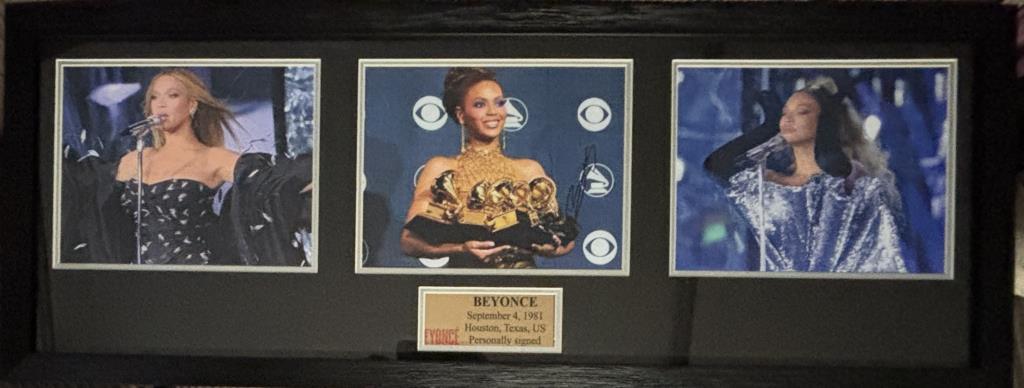 Beyonce Personally Signed Award Winning 10 X 8 Photo. The Photo Has Been Framed With Two Unsigned Music Concert Photos. Measuring 970 X 320, This Is Ready To Hang. The Item Is Accompanied By A Certificate Of Authenticity.