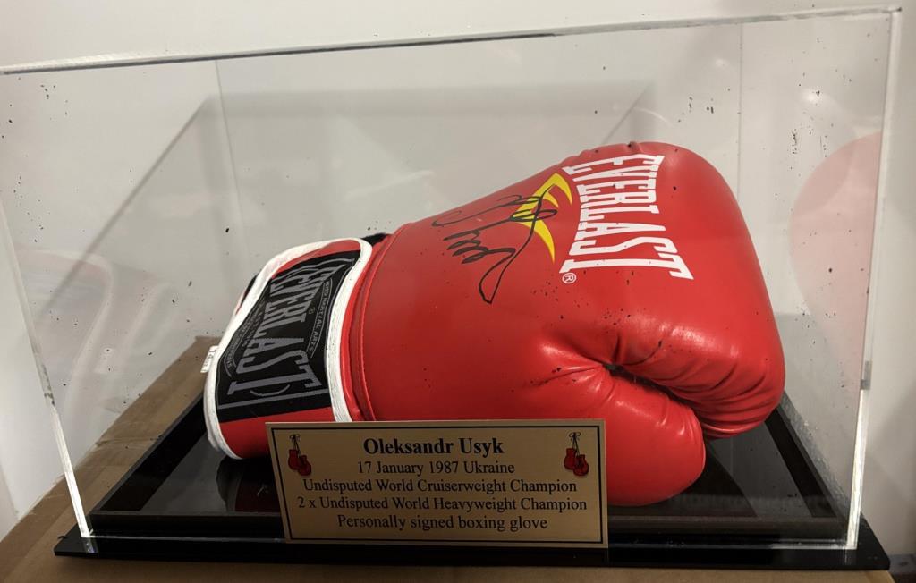 OLEKSANDR UYSK IGNED BOXING GLOVE IN DISPLAY CASE Oleksandr Usyk Personally Signed Everlast Boxing Glove. The Ukraine Is The Current Undisputed World Heavyweight Champion Who Is Undefeated. Usyk Is A Former Undisputed World Cruiserweight Champion And Olympic Gold Medalist. Usyk Has Beaten To Date Boxers Fury (Twice), Joshua (Twice), Chisora And Dubois. He Is A Future Hall Of Famer. The Glove Is 12 Oz. The Glove Is Presented In An Acrylic Display Case (330 X 200 X 200) With A Statstics Plaque. The Item Is Accompanied By A Certificate Of Authenticity. 584880+8