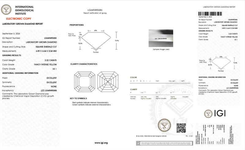 EMERALD 2.22CT LIGHT YELLOW VS1 LAB GROWN DIAMOND Dimensions: 6.89 x 6.64 x 5.04mms Accompanied By Igi & Inscripted Report Number Igi - 649490686 Condition: Good - Refer Images 0 163031+20 CROSSDOCK