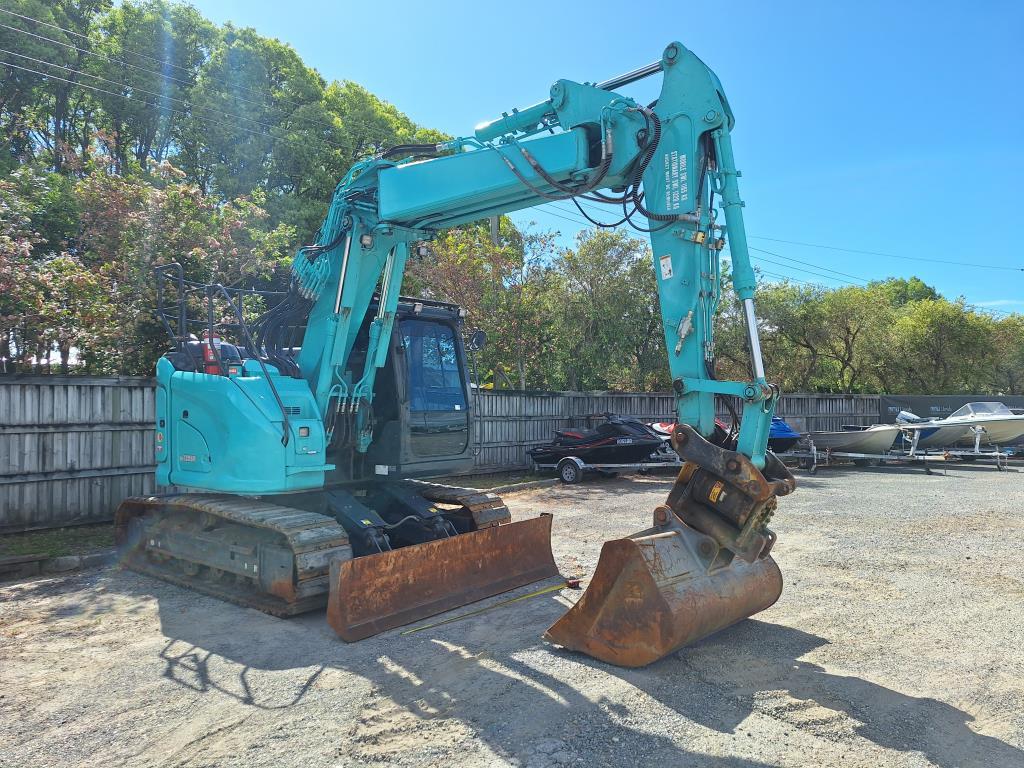 2023 Kobelco SK135SR Excavator Year: 2023 Make: Kobelco Model: SK135SR-7 Serial No: YY09052255 Engine: Kobelco 3.0L, 4-Cylinder Turbo Diesel Hours Indicated: 980.8Hrs Cabin: Enclosed Configuration: 500mm Steel Tracks With Rubber Pads Capacity 13.5T Description/Extras: 1600mm G.P Bucket, Tilting/Quick Hitch, Tilting Boom Arm, 2480mm Push Blade, E-Stops, Fire Extinguisher, Air-Conditioning, Bluetooth Stereo, ROPS/FOPS, Reverse Camera , Amber Light, Auxiliary Pipping Serial: YY09052255 #135EX
