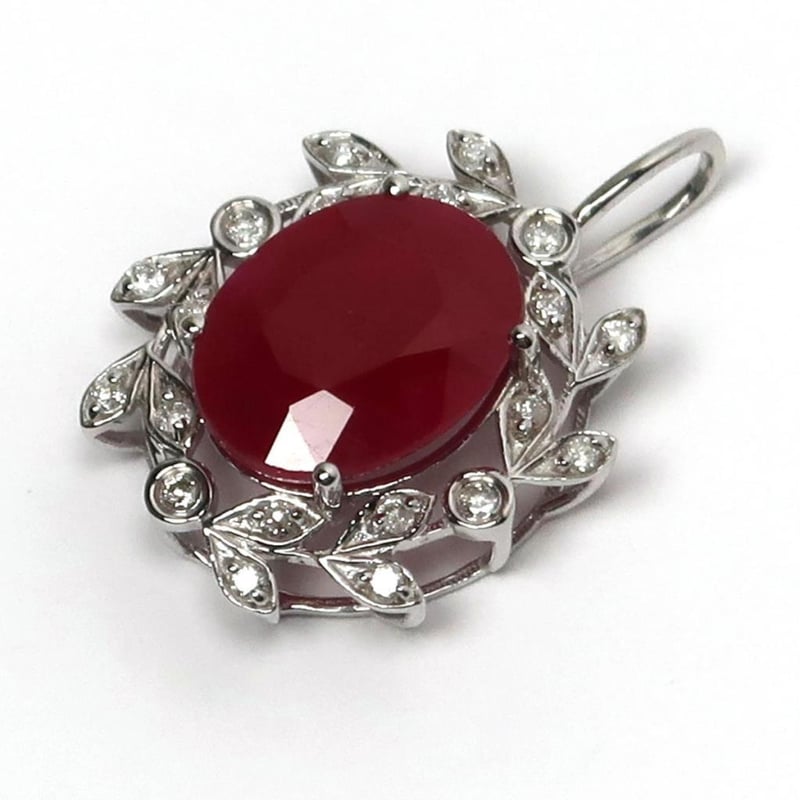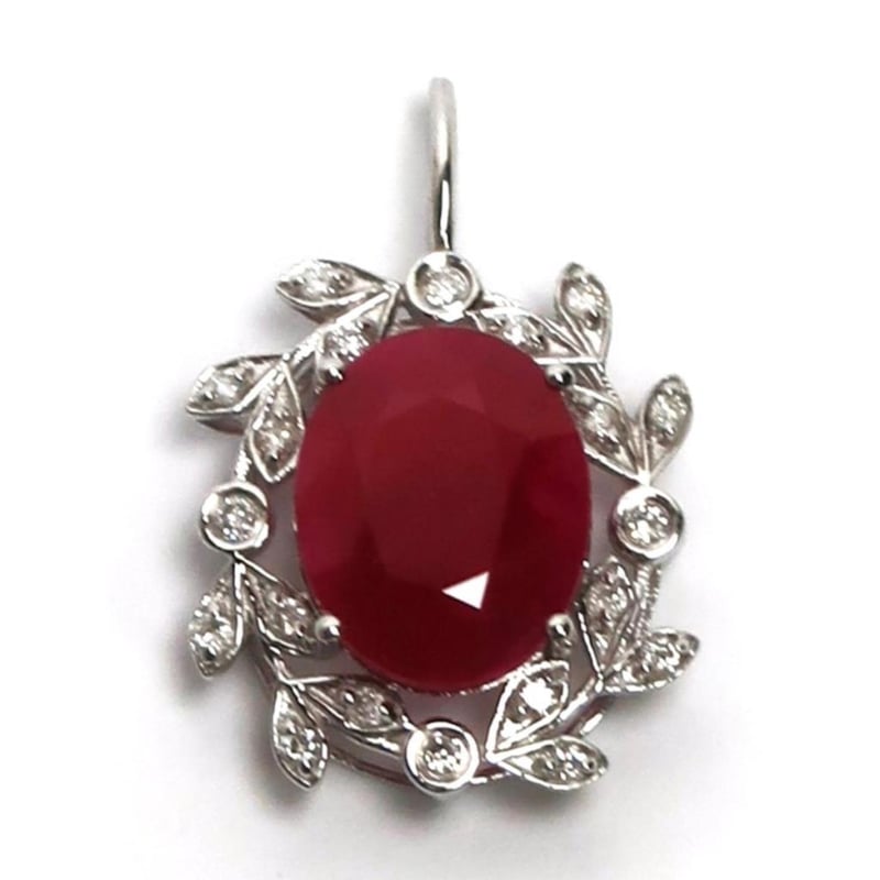 9Ct White Gold Natural Diamond & Ruby Pendant The Item Contains: