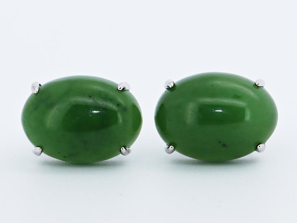 NATURAL BURMESE JADE EARRINGS ON 925 SILVER - WITH DIGITAL CERTIFICATE ONLY