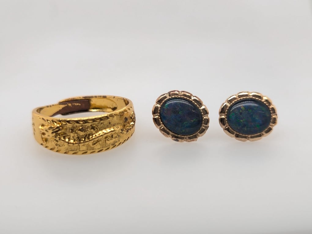 YELLOW GOLD PLATED RING AND 925 SILVER AUSTRALIA OPAL EARRINGS Condition: Good - Refer To Images 584947+3