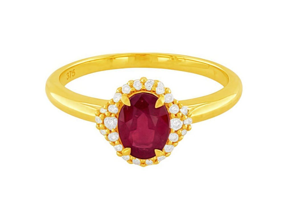 9CT YELLOW GOLD RUBY AND DIAMOND RING