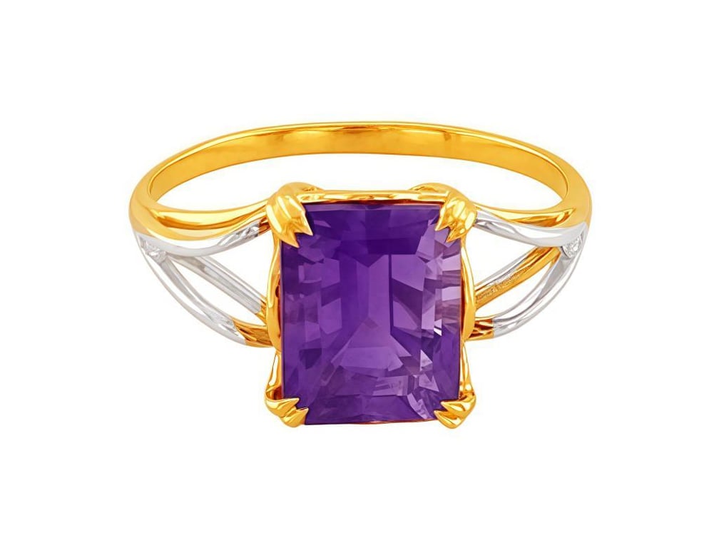 9CT YELLOW GOLD AMETHYST AND DIAMOND RING