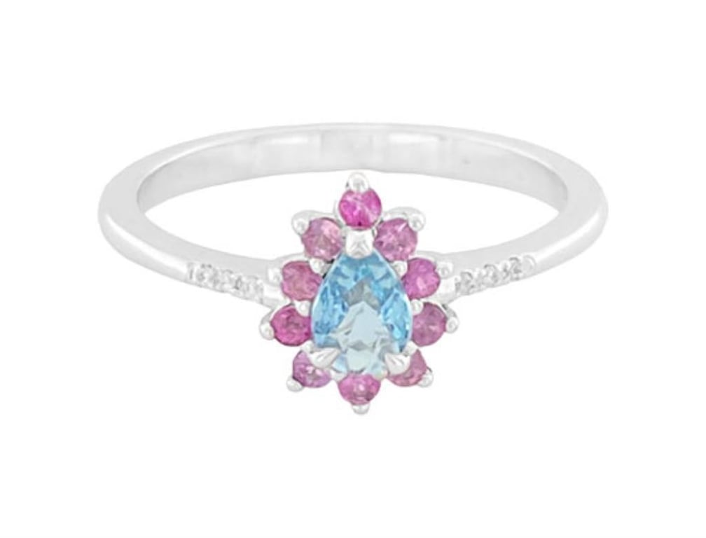9CT WHITE GOLD PIBK SAPPHIRE, AQUAMARINE AND DIAMOND
