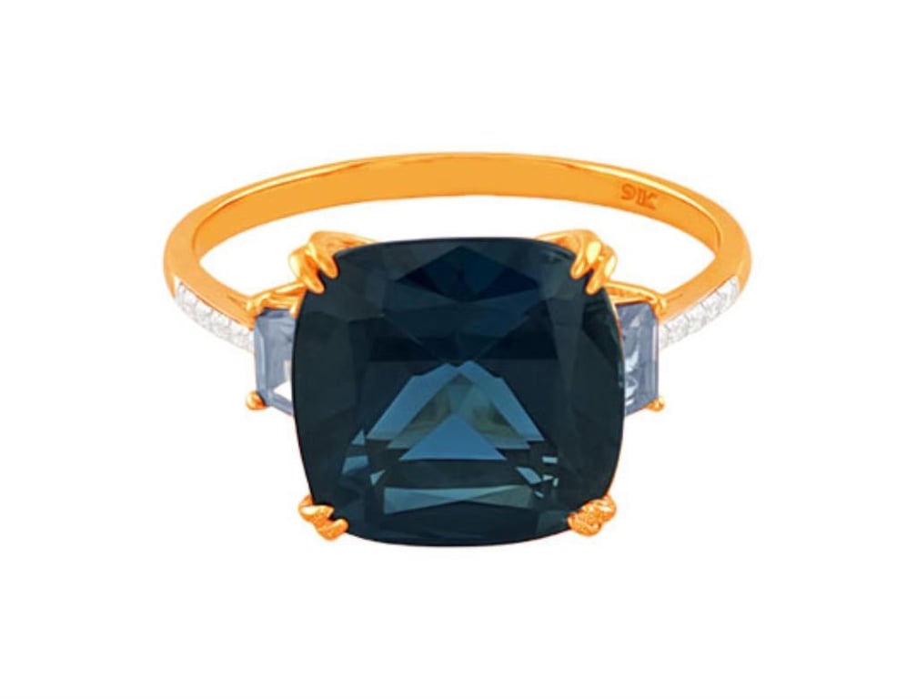 9CT YELLOW GOLD LONDON BLUE TOPAZ DIAMOND RING