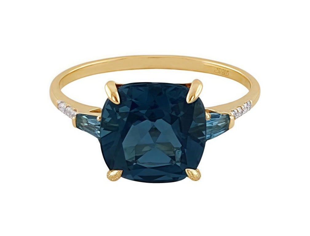 9CT YELLOW GOLD LONDON BLUE TOPAZ AND DIAMOND RING