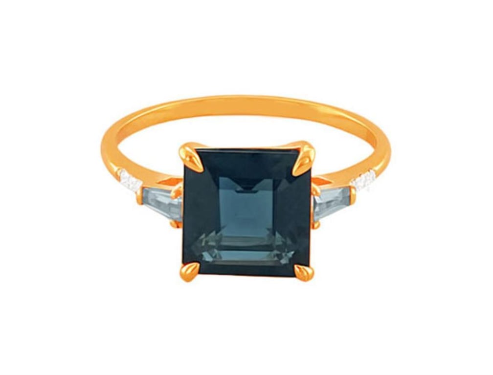 9CT YELLOW GOLD LONDON BLUE TOPA, BLUE TOPAZ AND DIAMOND RING