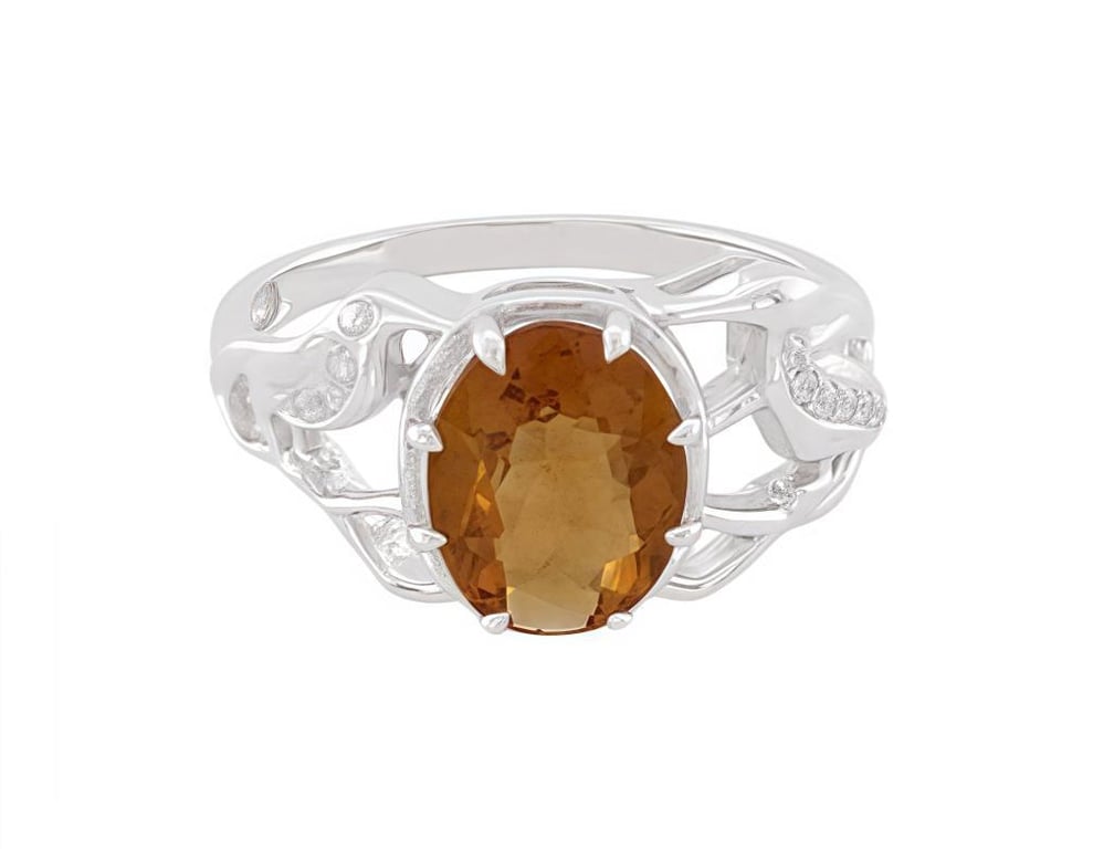 9CT WHITE GOLD CITRINE AND DIAMOND RING