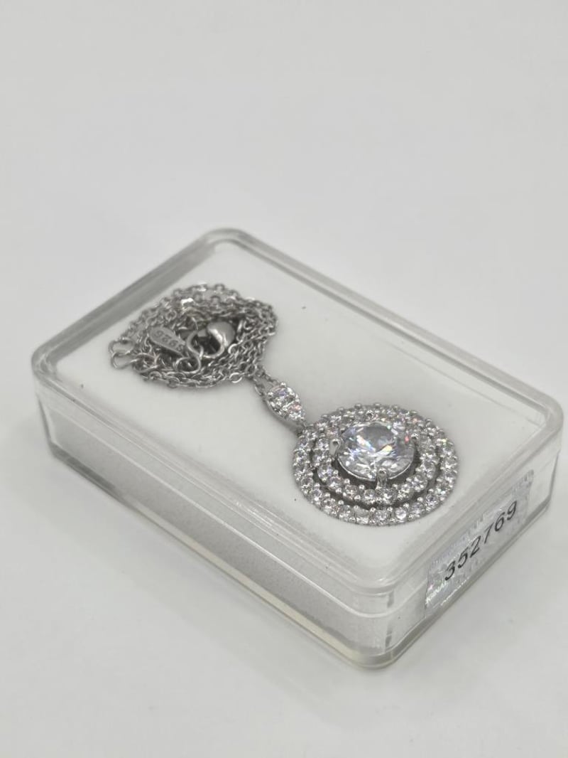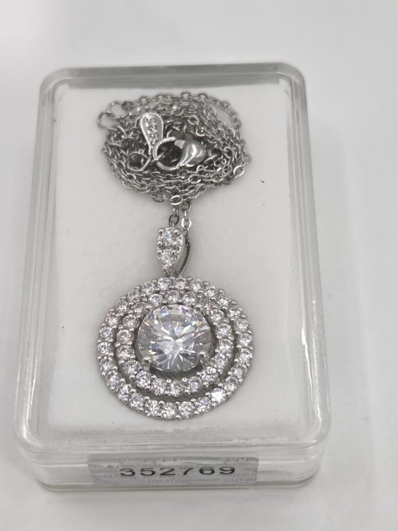 A 3.2 Tcw Laboratory-Created Moissanite Necklace Set In 925 Sterling Silver. Features Round Cut Stones With Vvs Clarity, No Treatments, And A Bright Silver Finish. Report #352769, Issued By Certauth On 25/7/2025, Lists An Estimated Valuation Of Usd $349.00