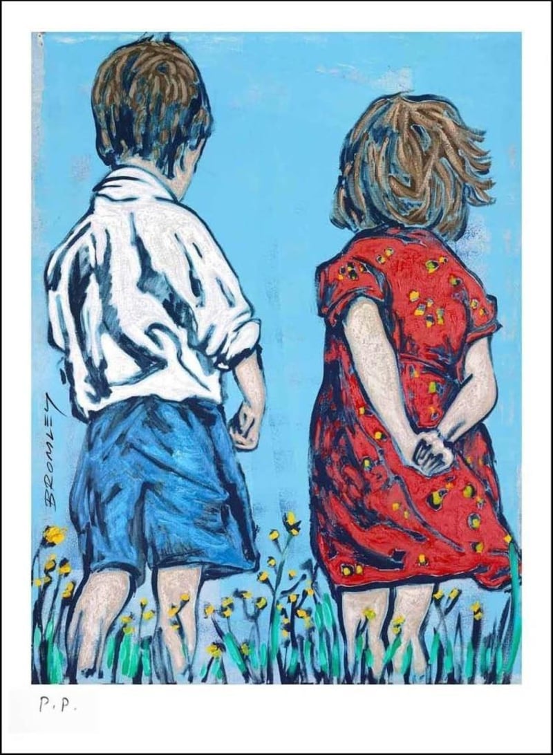 DAVID BROMLEY (1960 - )Printers Proof Print - Archival Pigments on Artist Paper/CardTitle: FriendsSigned: Lower Left (Signed in Print - Part of Print)Editioned: Lower Left, PP (In Pencil)Embossed Seal: Lower Right - David Bromley Limited EditionImage Size: 33cm x 24cmCondition: Excellent - NewUnframed.