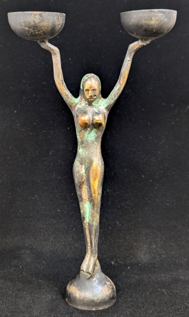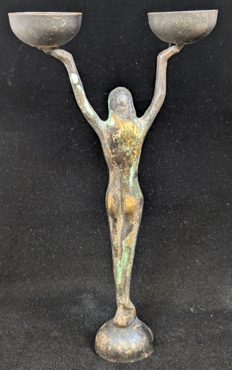 BRETT HARRISON ALLEN ART DECO STYLE LADY DOUBLE CANDLESTICK HOLDER