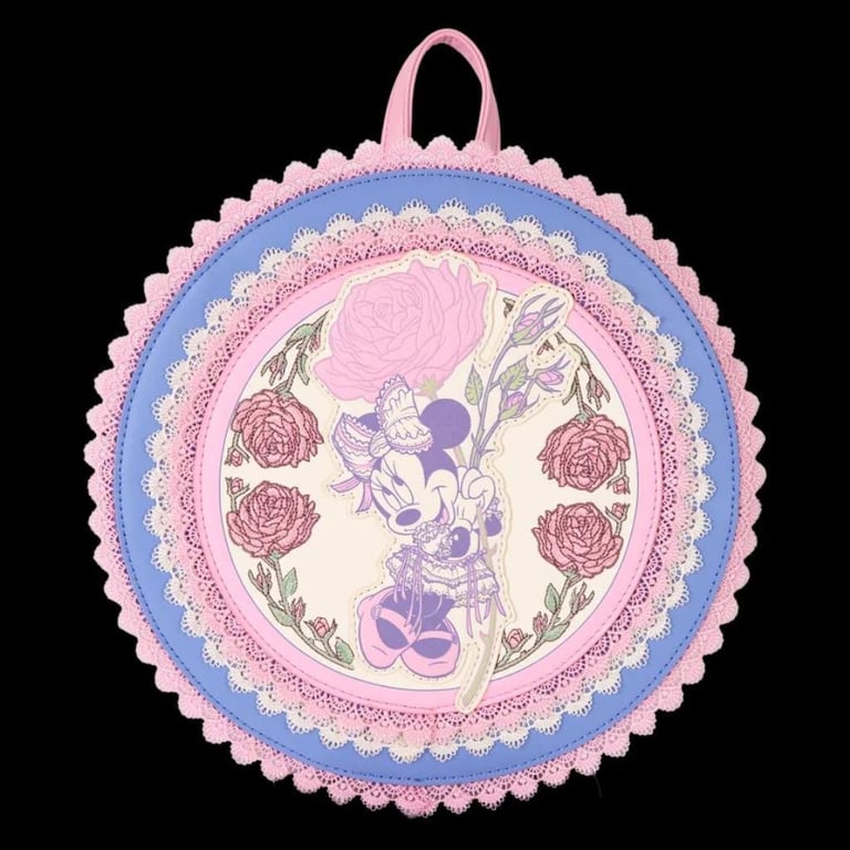 Fashion Is In Full Bloom With This Disney’S Minnie Mouse Mini Backpack. Minnie Flourishes In Style On The Front Of This Circular-Shaped Accessory. She Appears As An Applique, All Dressed Up And Holding A Small Bouquet Of Flowers. Embroidered Roses Surround Her, And Vintage Lace Details In Pink And White Make Concentric Circles To Frame The Scene. Pack Your Daily Essentials, Take Off On An Adventure, And Watch The Fun Blossom.