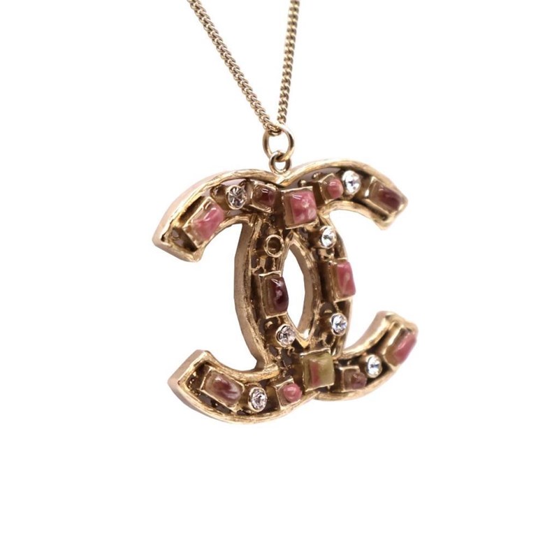 CHANEL RHINESTONE COCO MARK NECKLACE Material Gold-tone metal with rhinestone and crystal. Pendant Size: 4.5 x 4cm Chain Drop: 21cm Additional Condition Report - Moderate sign of wear and scratches throughout - Missing one crystal Comes With - Original Box - Certificate of Authenticity CROSSED DOCKED 155557+41