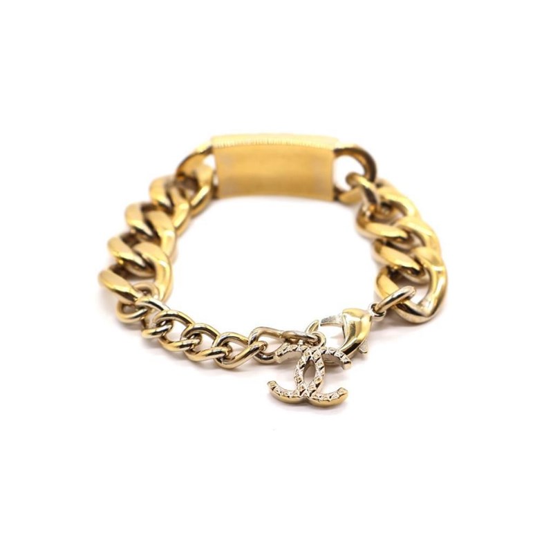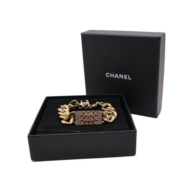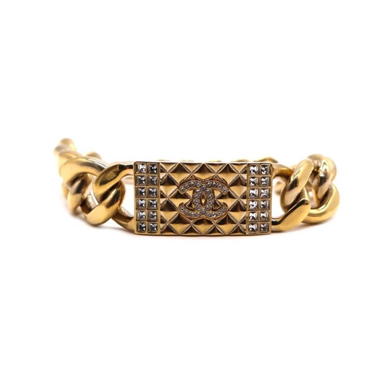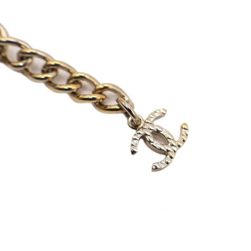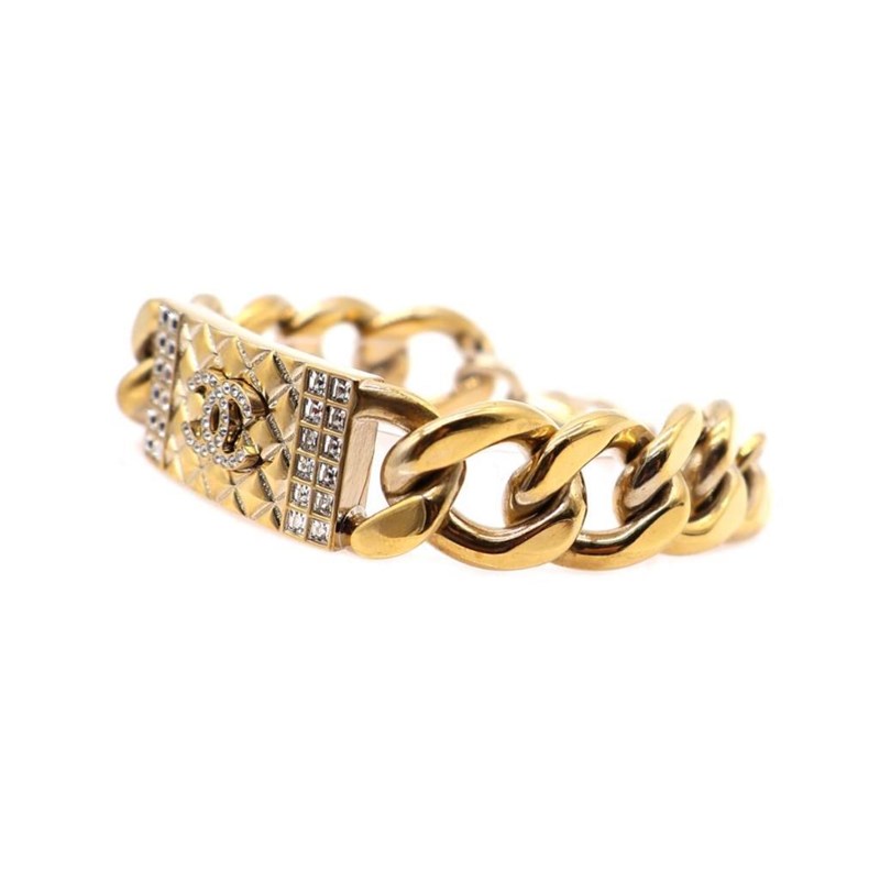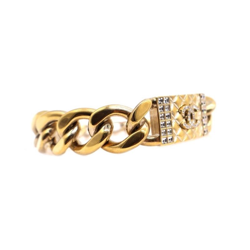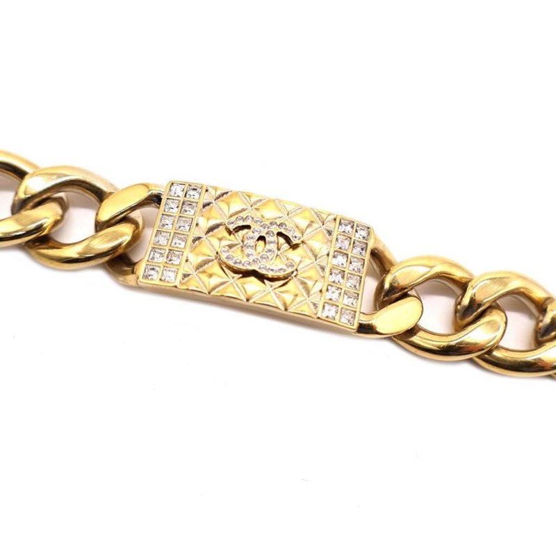 CHANEL CC CRYSTAL TEXTURED CHAIN LINK GOLD TONE BRACELET