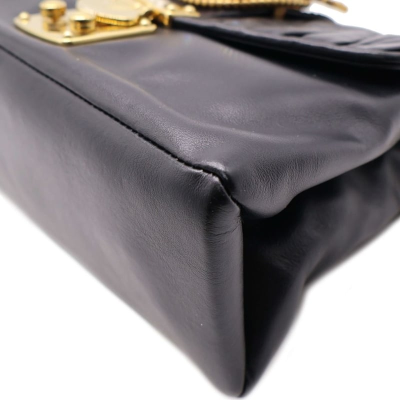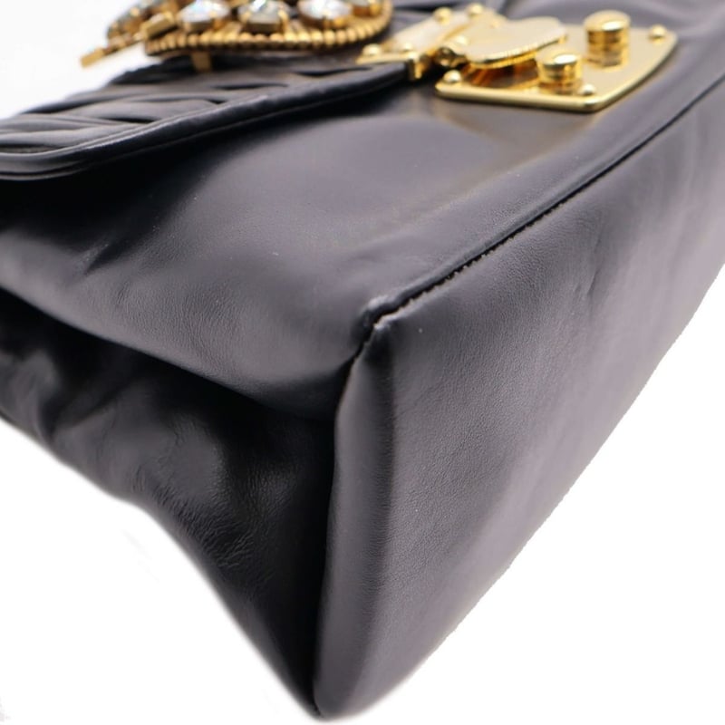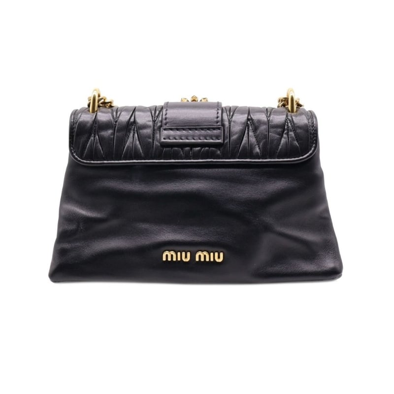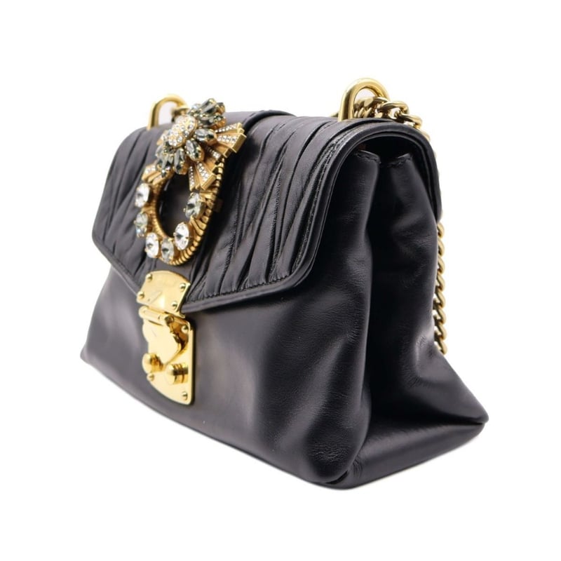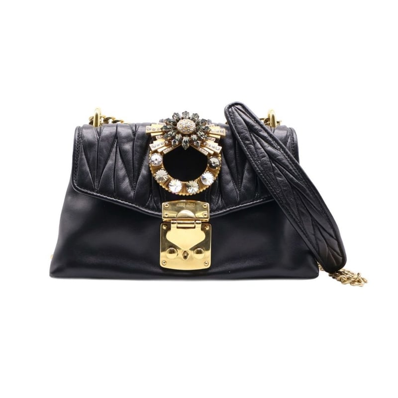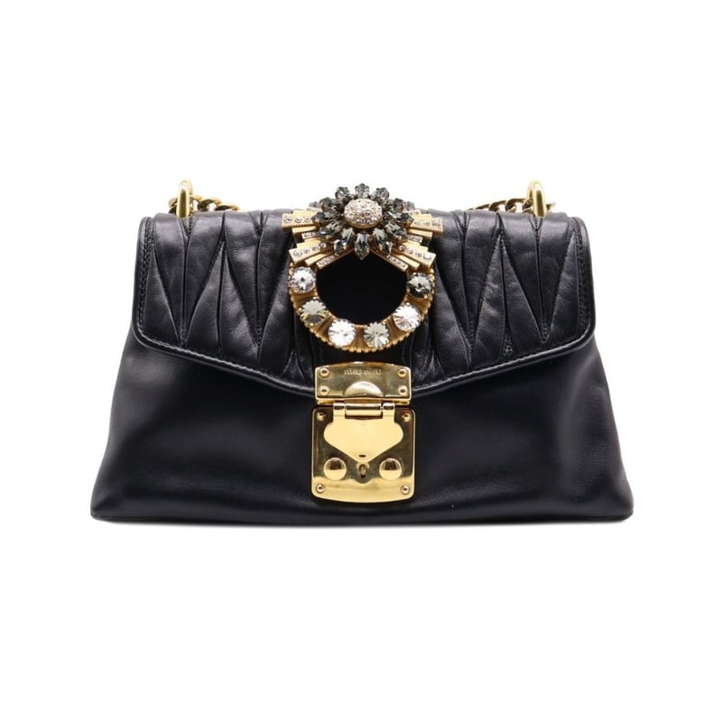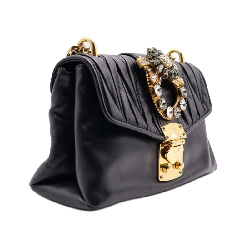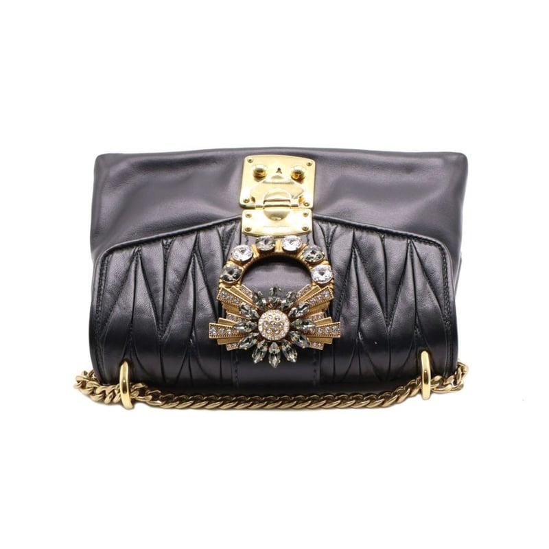 MIU MIU BLACK MATELASSÉ LEATHER CRYSTAL EMBELLISHED SHOULDER BAG