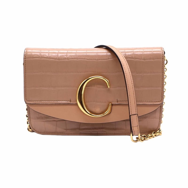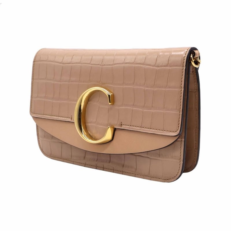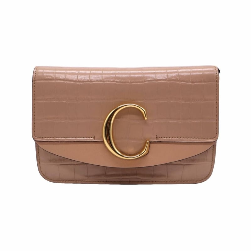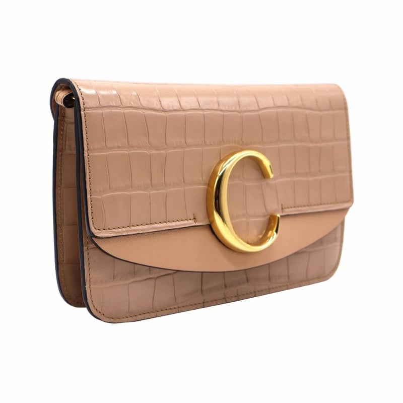 CHLOE CROC EMBOSSED LEATHER SMALL C SHOULDER BAG