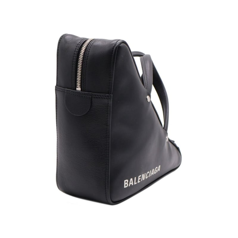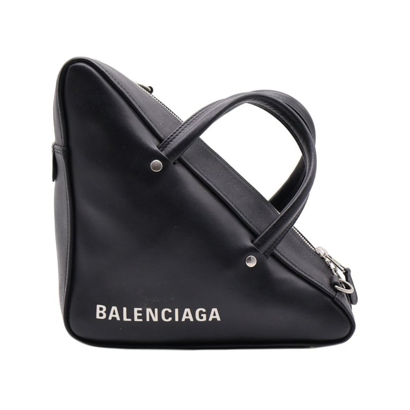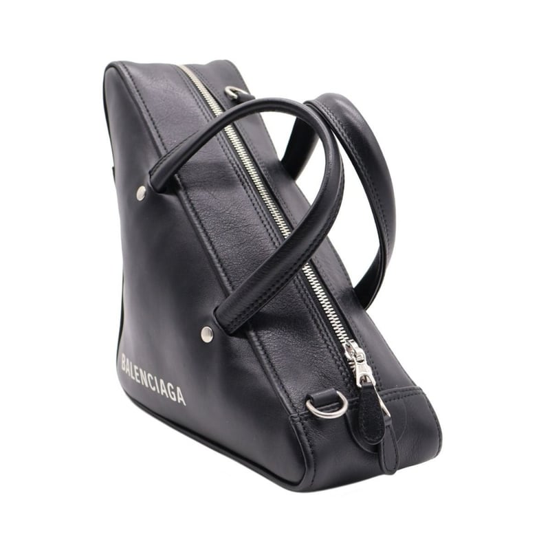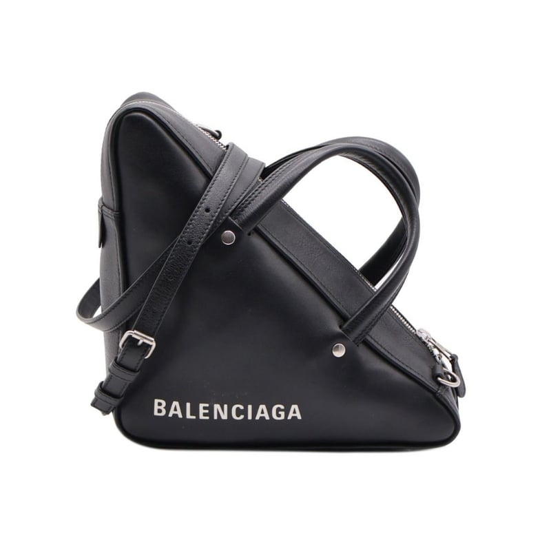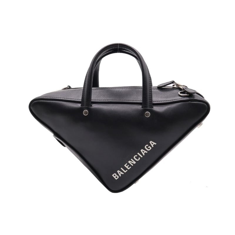 BALENCIAGA BLACK LEATHER SMALL TRIANGLE DUFFLE BAG