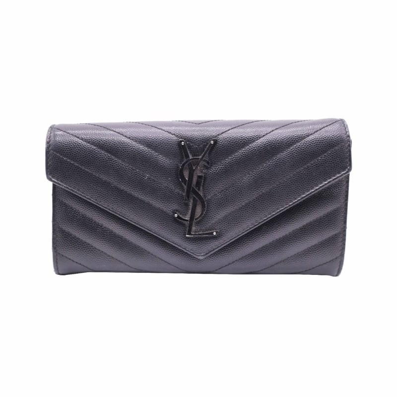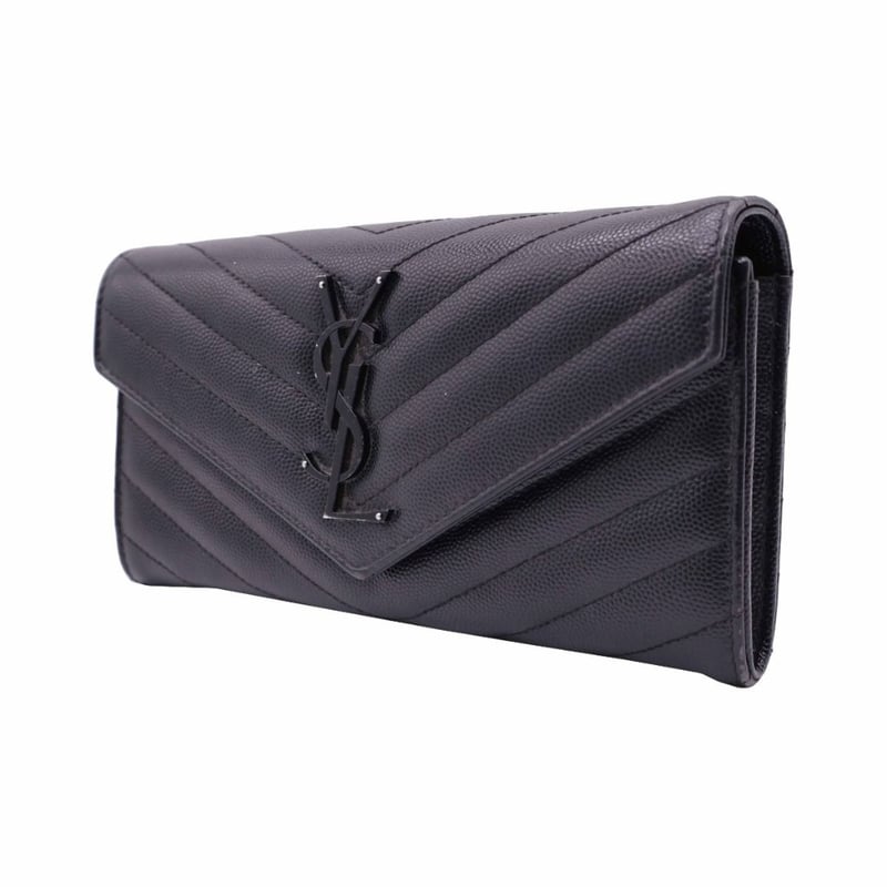 SAINT LAURENT MONOGRAM LEATHER FLAP WALLET BLACK