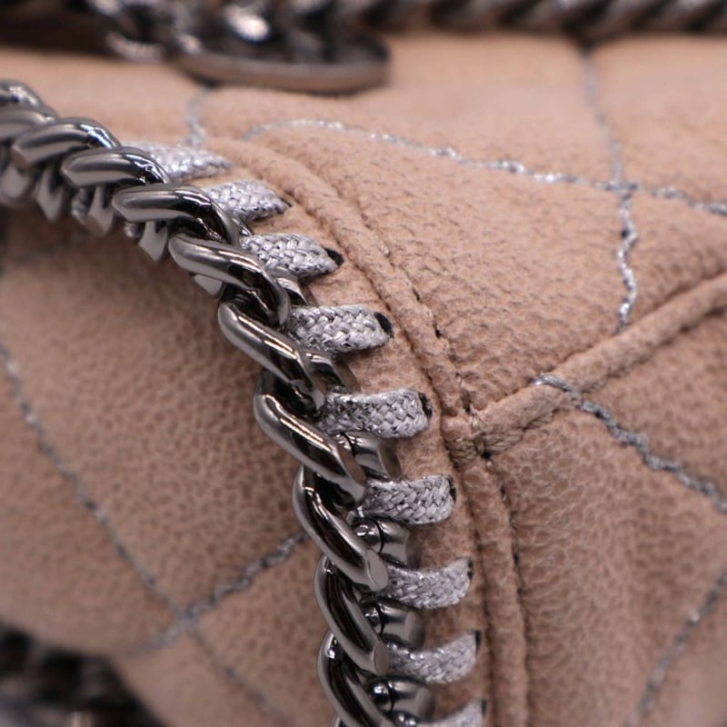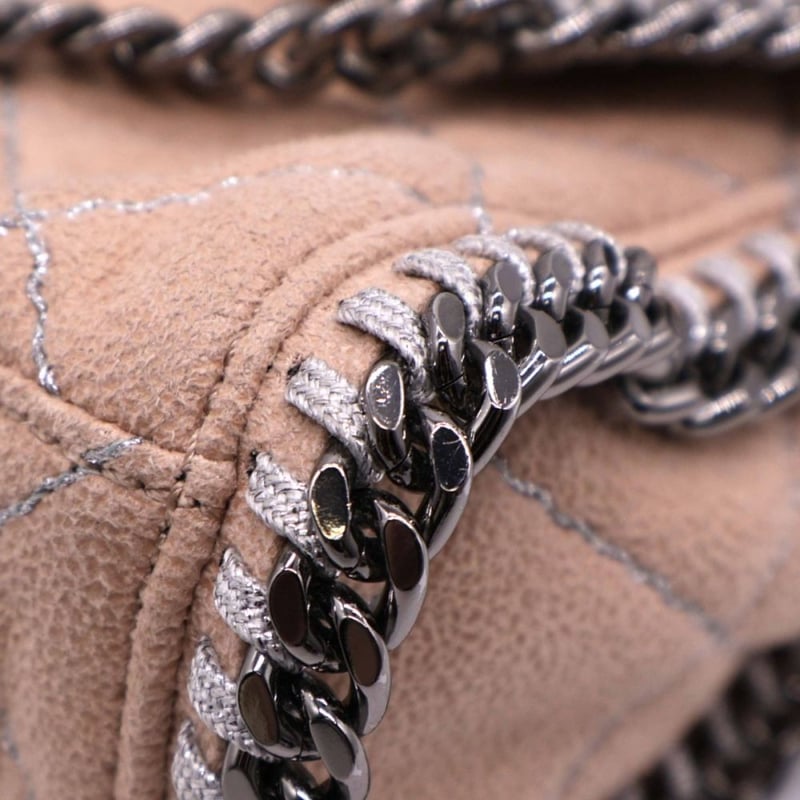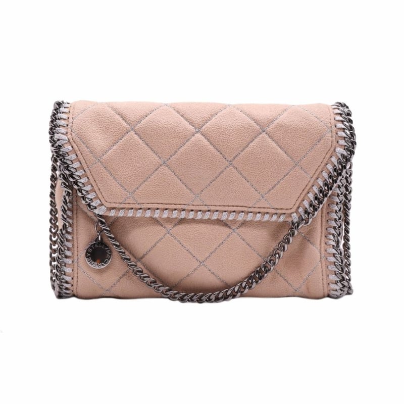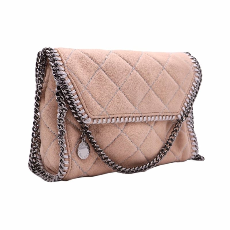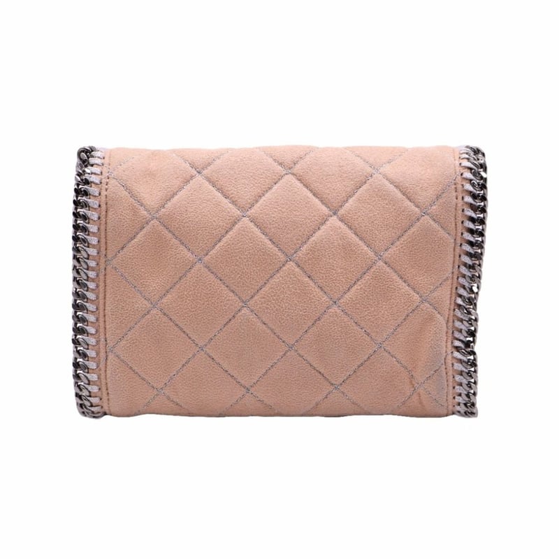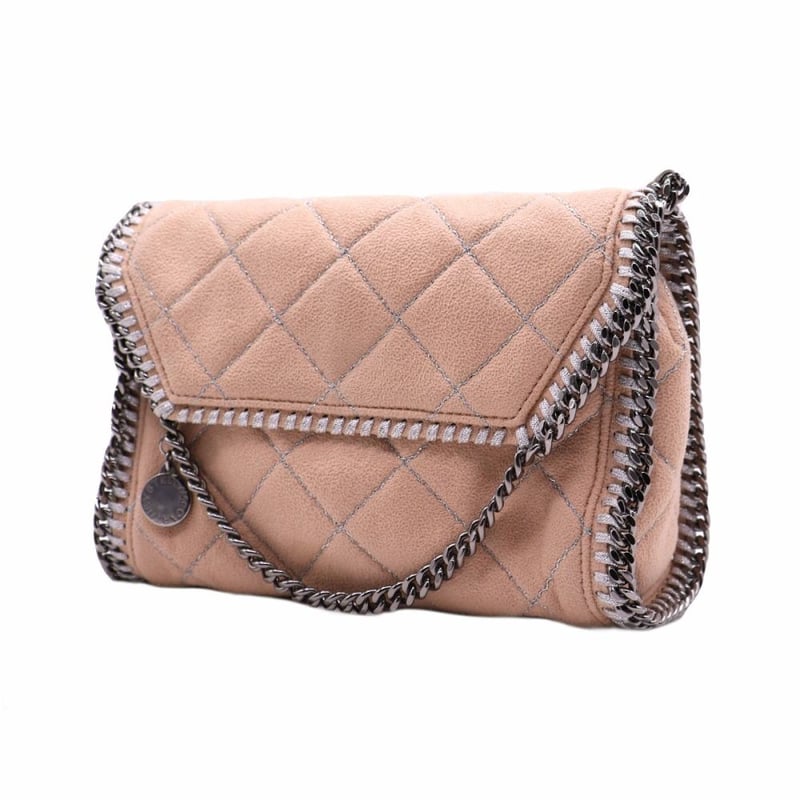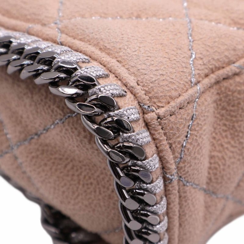STELLA MCCARTNEY PINK QUILTED FAUX SUEDE FALABELLA FLAP SHOULDER BAG