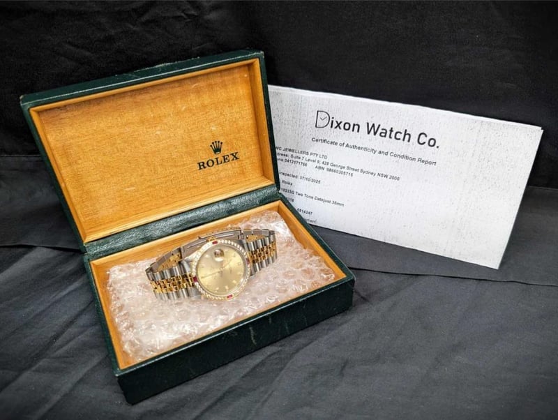 ROLEX 16233G DATEJUST 36 GOLD DIAMOND DIAL & BEZEL 36MM 1989 BOX & COA