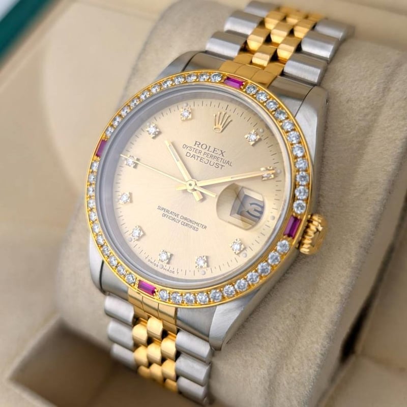 Model: Datejust 36 – Two Tone, Gold Diamond Dial, Diamond Bezel