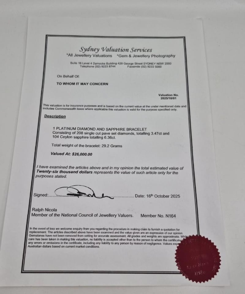 This valuation has been conducted by an independent third-party professional. The valuation amount is an assessment by the issuing valuer and does not reflect the auction value of the item.