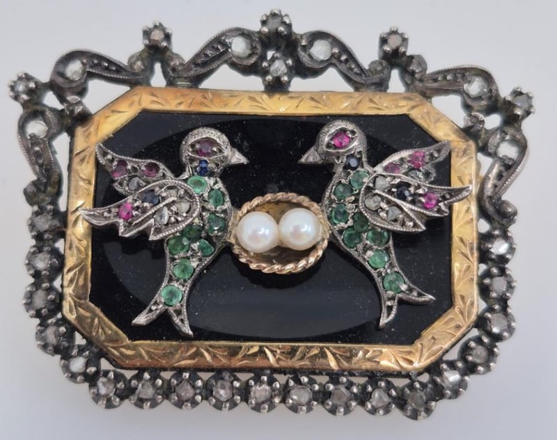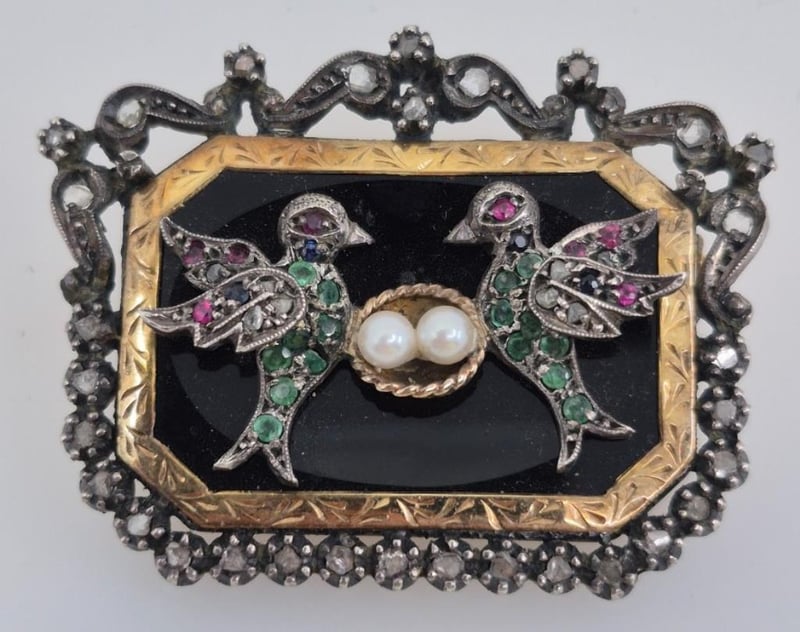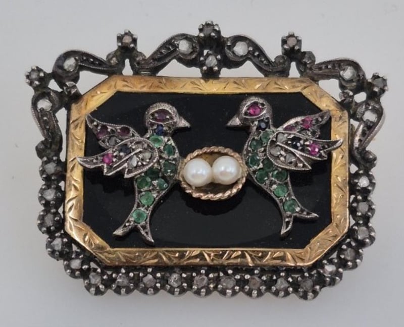 18K YELLOW GOLD BROOCH WITH BLACK ONYX INLAY