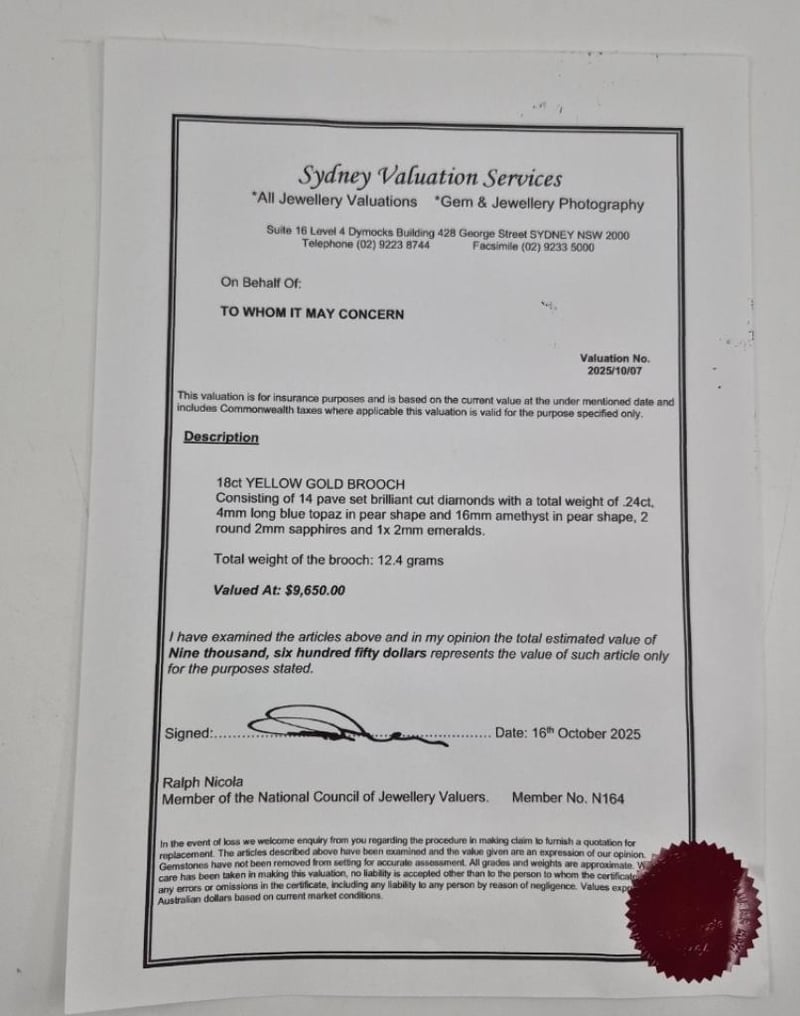 This valuation has been conducted by an independent third-party professional. The valuation amount is an assessment by the issuing valuer and does not reflect the auction value of the item.