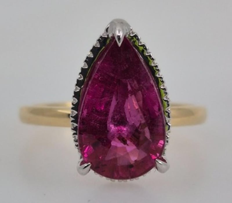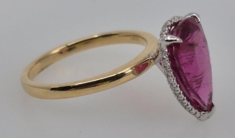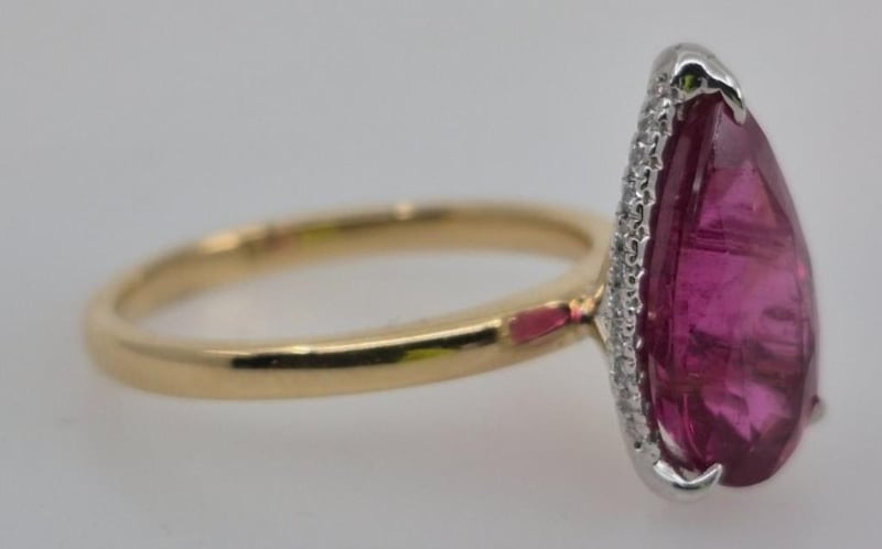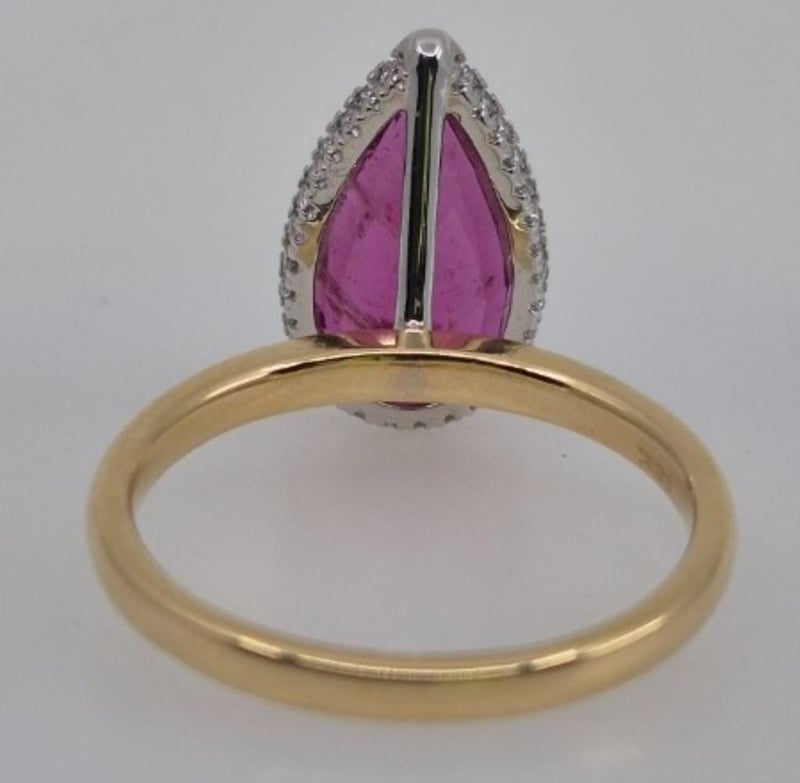 Featuring One Pear Cut 3.65Ct Pink Tourmaline Surrounded By Twenty Eight 0.14Tcw Pave Set Diamonds