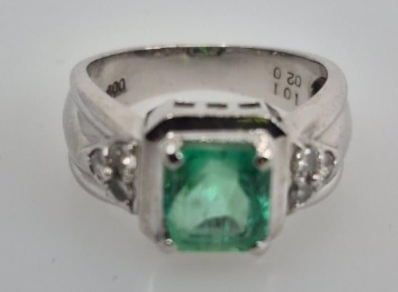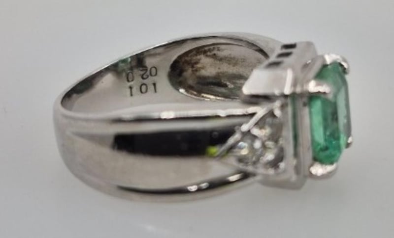 Featuring 1 Claw Set Colombian Emerald 1.01Cts And 6 Pave Set Shoulder Diamonds 0.20Cts