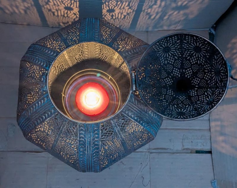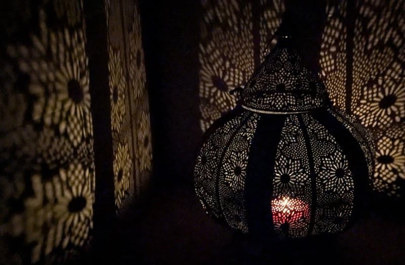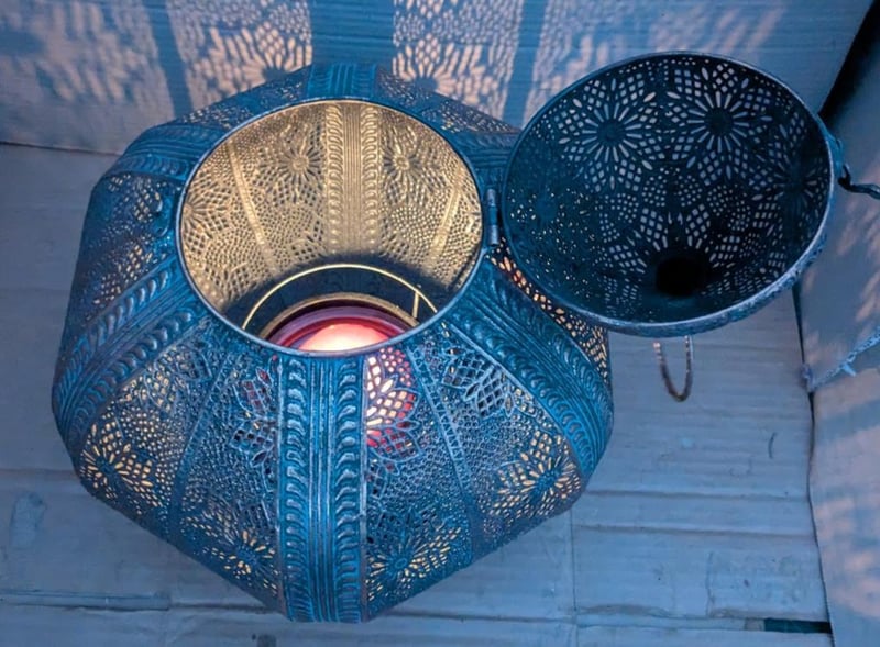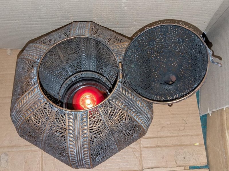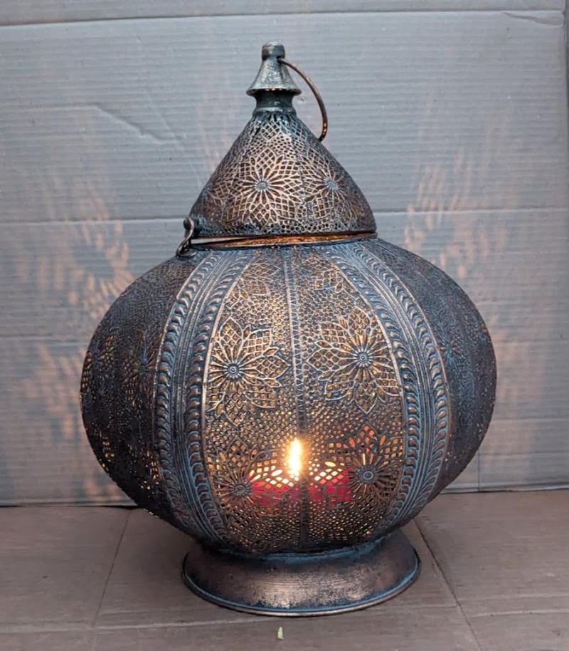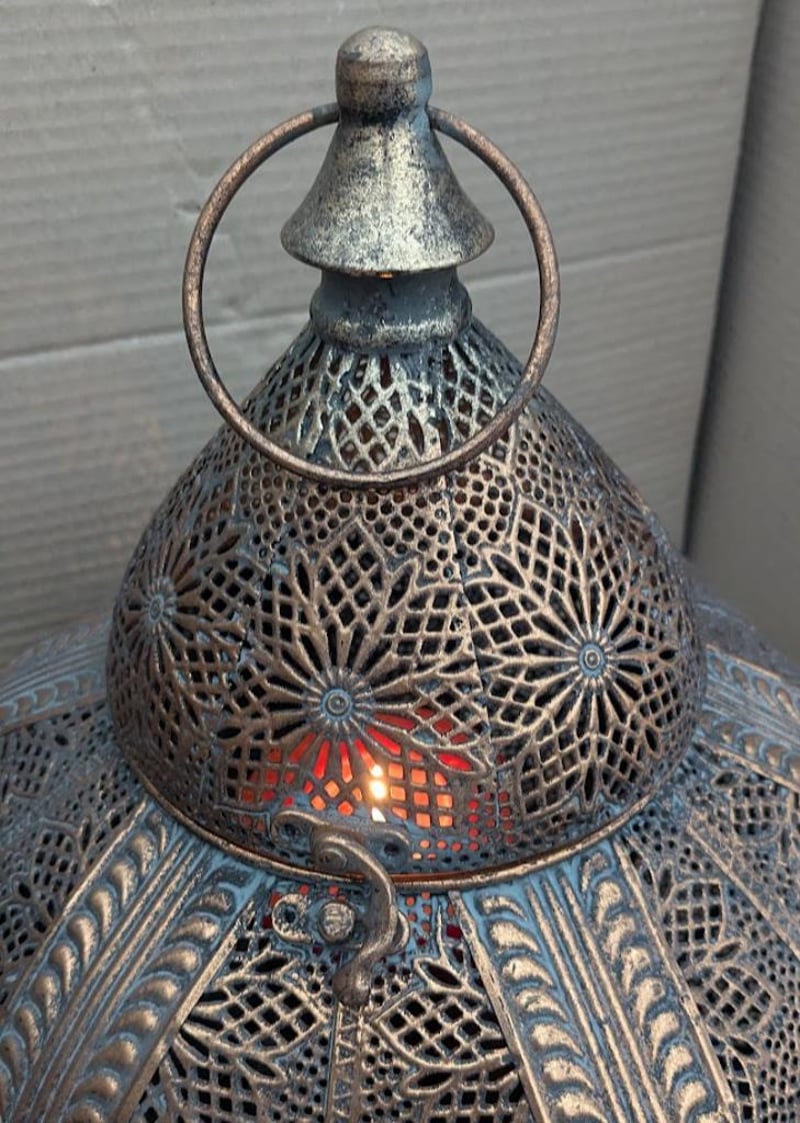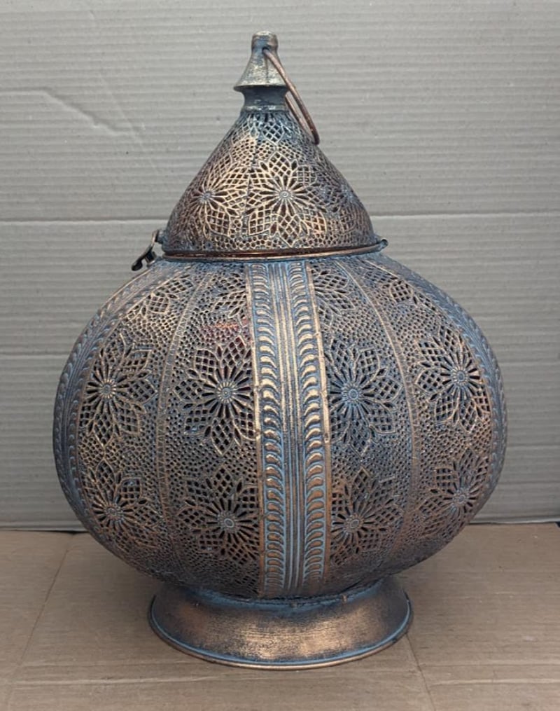 MOROCCAN HANGING LANTERN CANDLE BURNER, COPPER ALLOY 40CM TALL