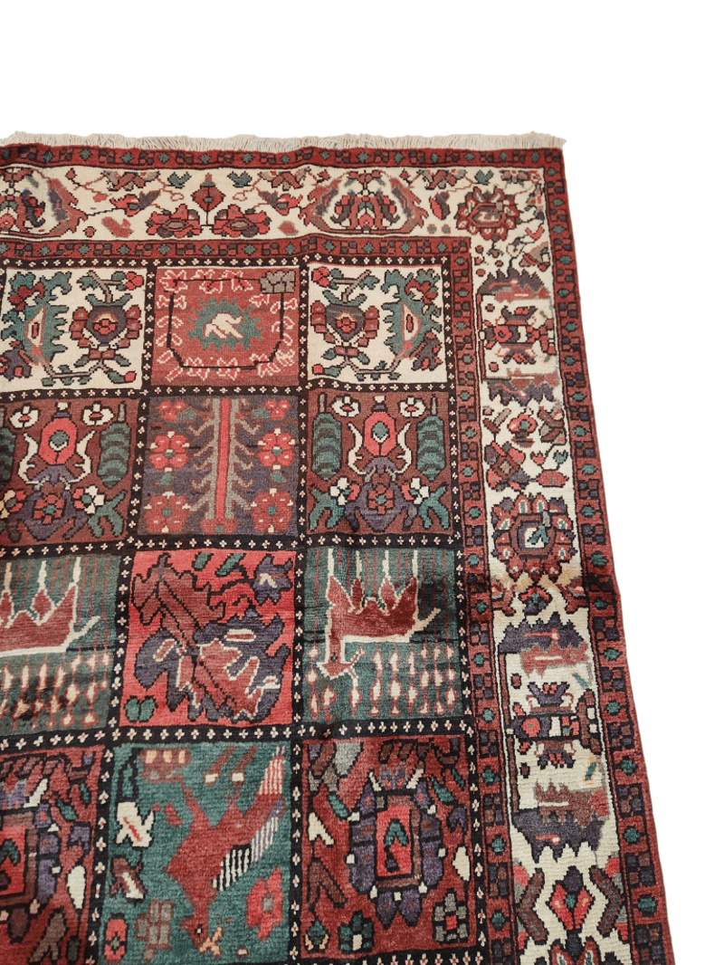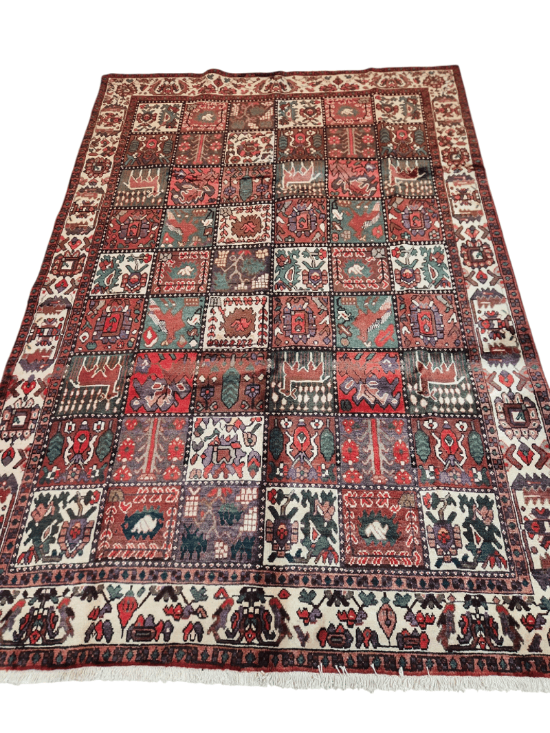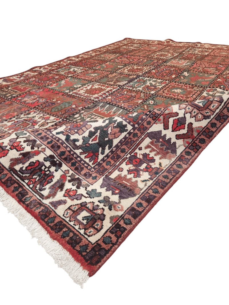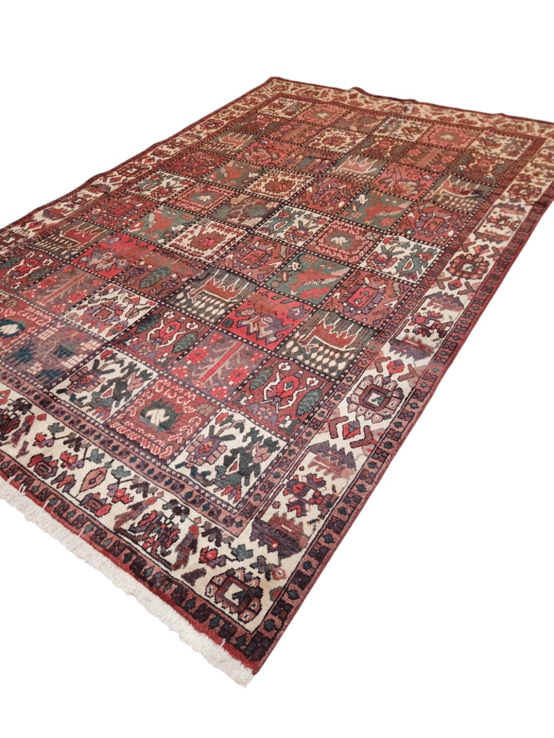 PERSIAN HAND KNOTTED BAKHTYAR RUG Persian Hand Knotted Vintage Bakhtyar Rug.Hard Wearing Rug. Pure Hand Spun Wool Pile. Four Seasons Design. Size: 305X210 Cm. Rrp: $4,500Size: 305x210Condition: Good - Refer To Images488227+159