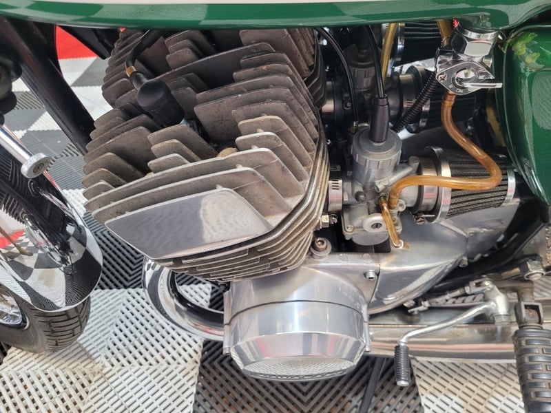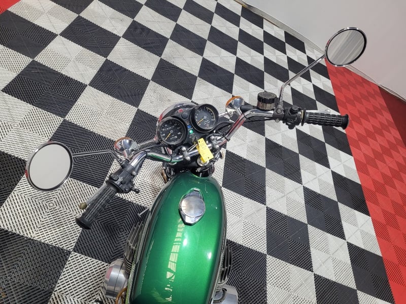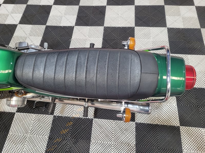 A classic street/road motorcycle finished in Green, powered by a 748cc (45.6 cu-in) two-stroke, transverse three-cylinder engine paired with a manual transmission.